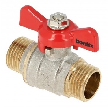 BONFIX universal ball valves are intended for shutting off the water supply within a water installation, sprinkler system (e.g. in greenhouses) or central heating system. The valves have a full bore, so no flow loss occurs, and have a red handle or butterfly knob which is permanently smooth to operate and removable.
