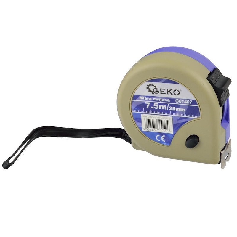The Geko 7.5-meter measuring tape is an essential tool for both professionals and DIY enthusiasts. Thanks to its sturdy steel tape and reliable locking mechanism, this tape measure combines durability with precision. Whether you are working on a construction project or handling small tasks, the Geko measuring tape meets all your measuring needs.