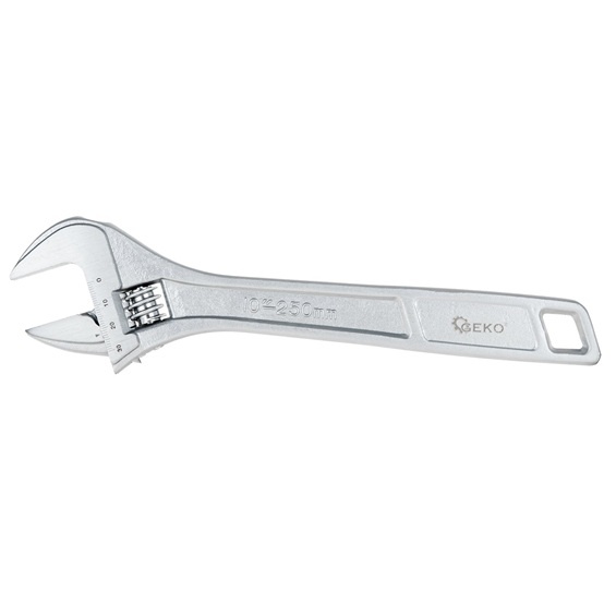 The GEKO adjustable wrench (also called a Baco) 250 mm (10 inch) is an indispensable hand tool for both professionals and DIY enthusiasts. Thanks to its wide jaw opening up to 34 mm, strong CrV tool steel, and ergonomic grip, you can work precisely, comfortably, and confidently on any job.