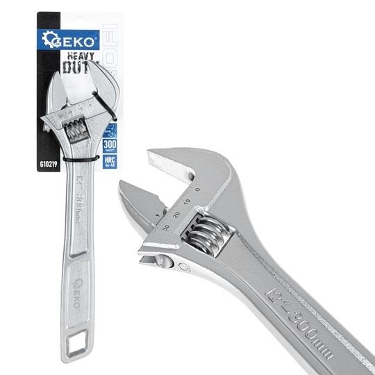 The GEKO adjustable wrench (also called a Baco) 300 mm (12 inch) is an indispensable hand tool for both professionals and DIY enthusiasts. Thanks to its wide jaw opening up to 40 mm, strong CrV tool steel, and ergonomic grip, you can work precisely, comfortably, and confidently on any job.